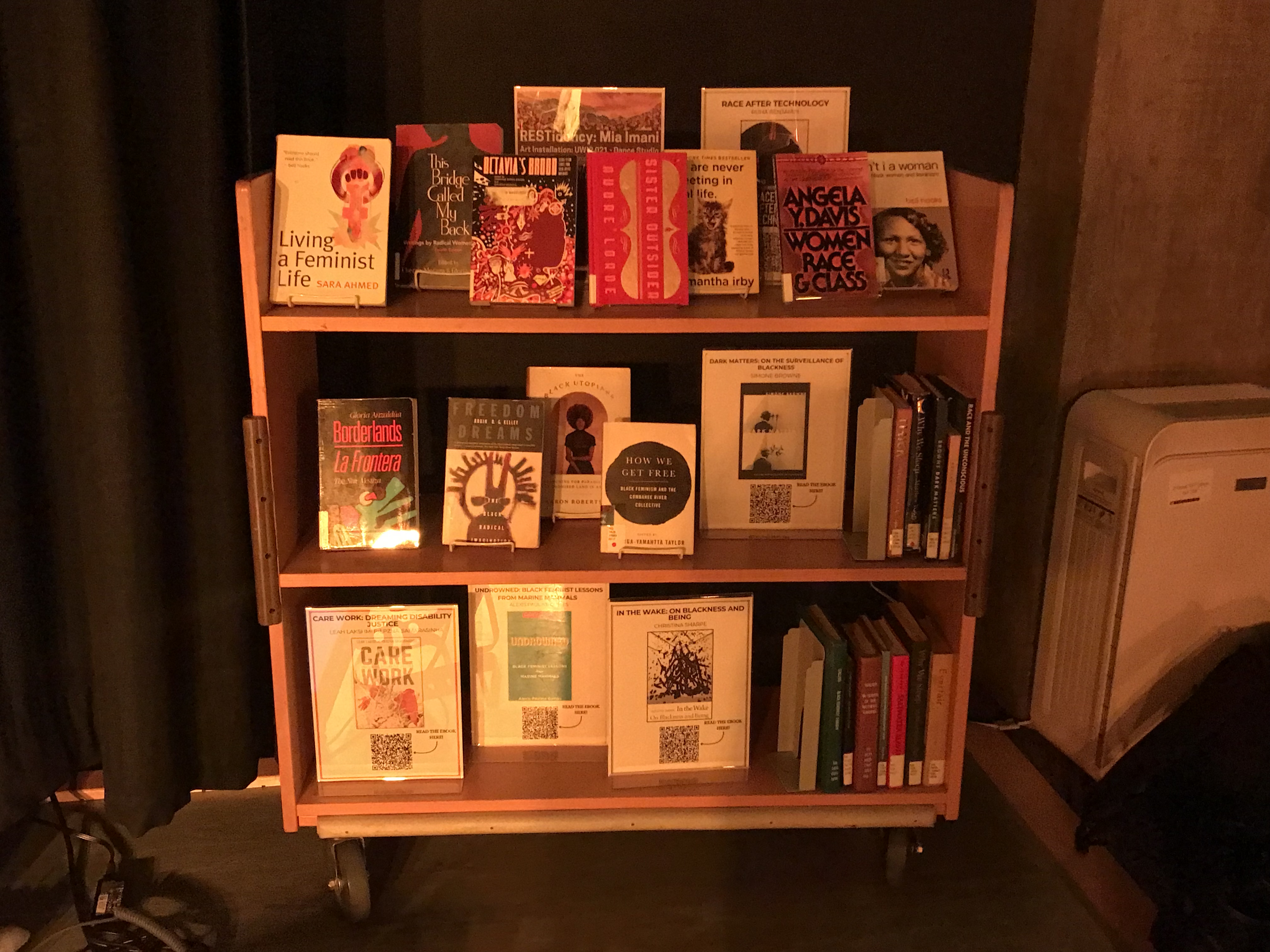 Mia Imani’s work is inspired by a rich tapestry of work from Black women literaries like Octavia Butler and Toni Morrison, as well as scholars like Tricia Hersey who founded The Nap Ministry and coined the term “rest as resistance.” Mia Imani emphasized her work’s philosophical focus on Radical Rest, which according to érudit is “a Black femme and queer-led social movement that focuses on restorative practices and experimental spaces that aim to close the “sleep gap” within the Black Diaspora.” The Dreaming Room installation was designed to challenge the norm of constant productivity at universities as institutions enforce a culture where students, staff, and faculty aren’t able to get rest.